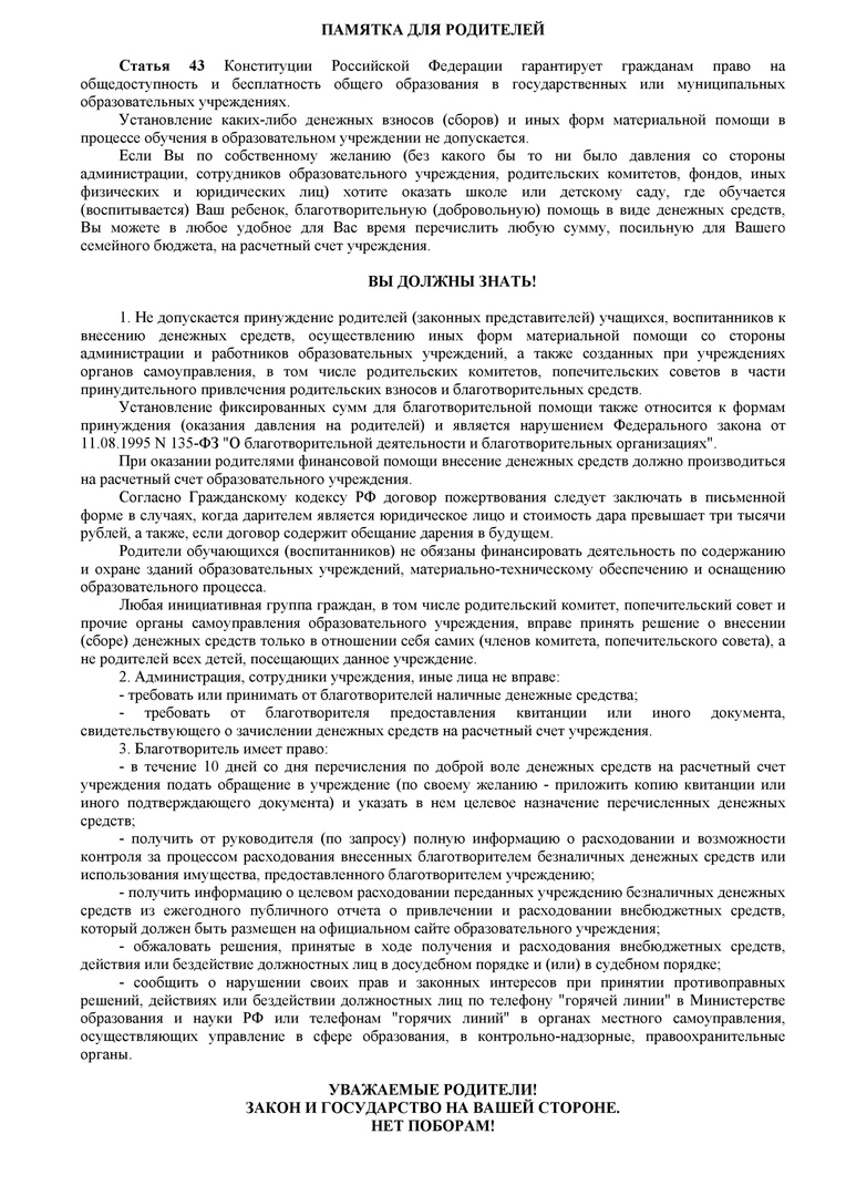 отсутствие случаев коррупционного поведения в образовательном учреждении;
