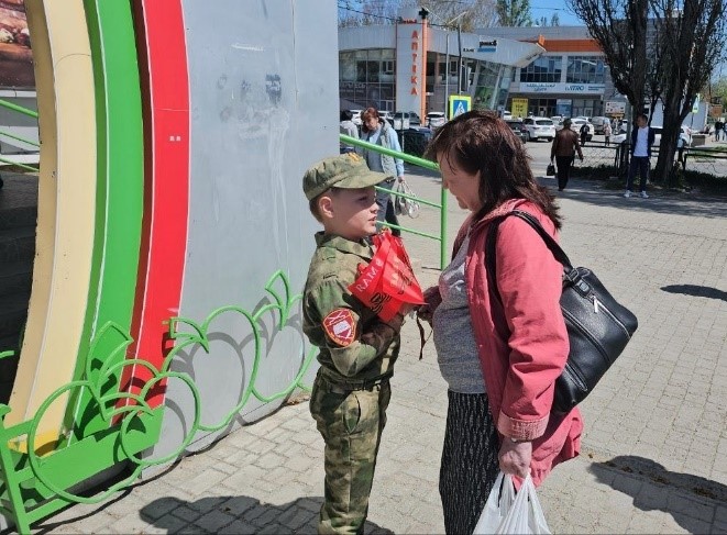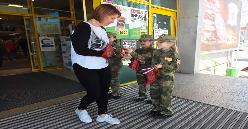 Воспитанники кадетского класса совместно с кураторами из Росгвардии провели акцию "Георгиевская ленточка".