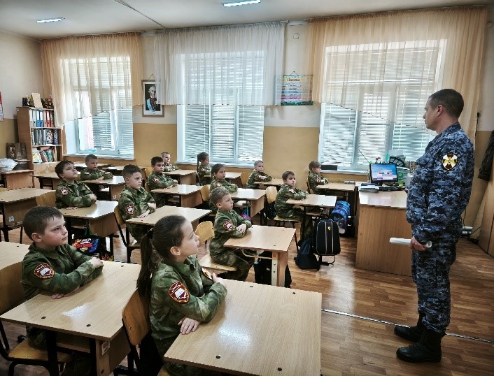 Во 2- а классе прошёл Урок Мужества. Воспитанники кадетского класса узнали о дне основания Росгвардии, о задачах, которые выполняют офицеры части.