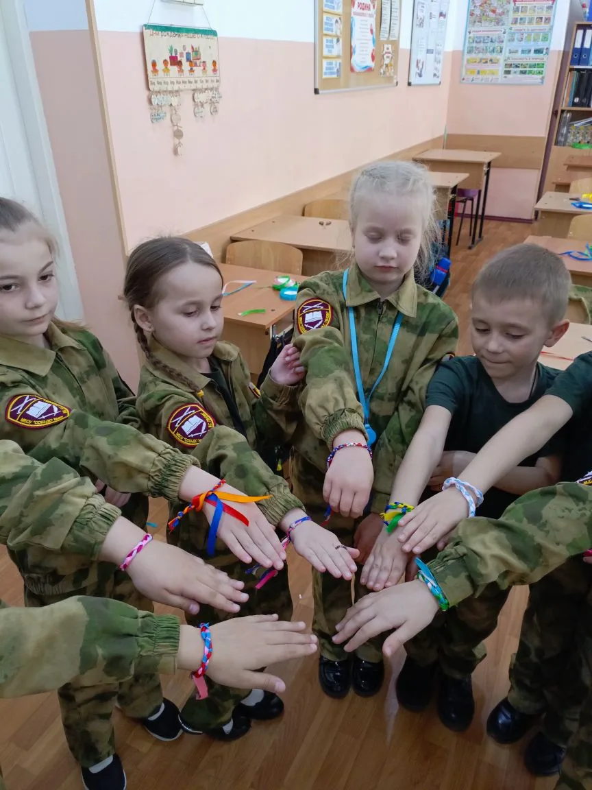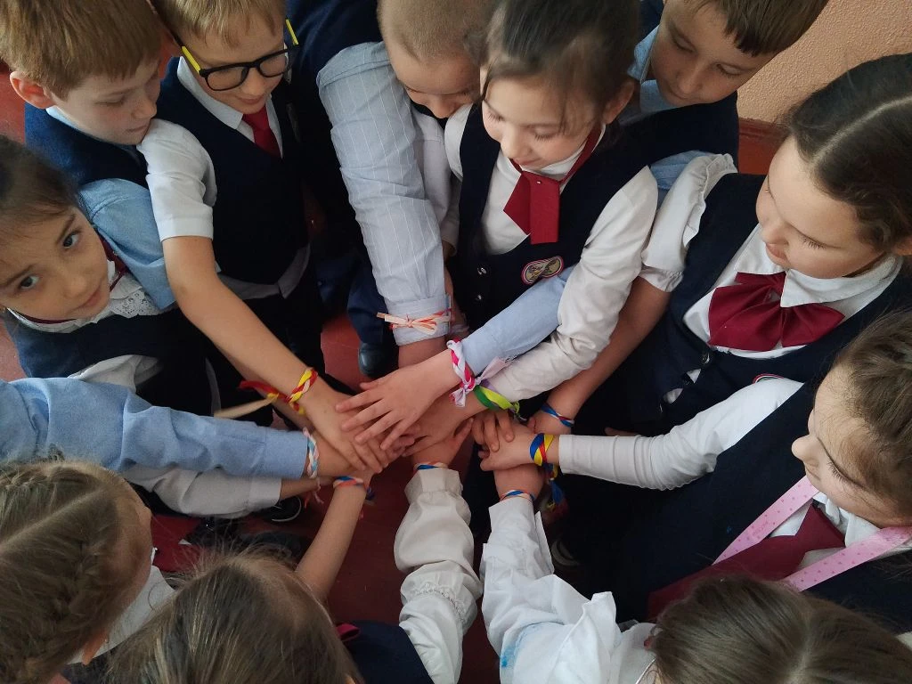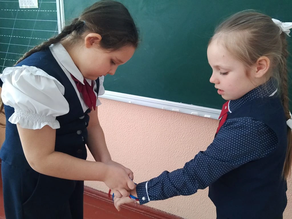 Учащиеся изготовили ленточкибраслеты как символ дружбы и поддержки. Браслеты были розданы всем участникам образовательного процесса.